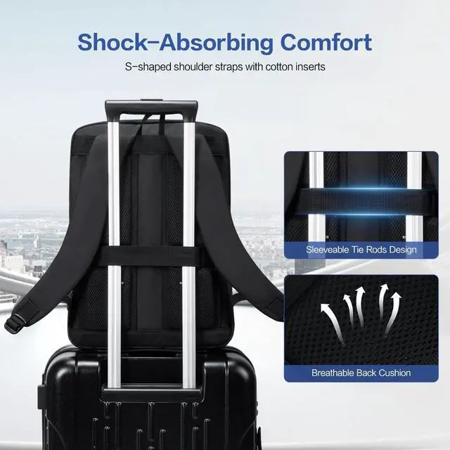 SLEEVEABLE TIE RODS DESIGN: The computer bag is designed with an elastic luggage strap that can slide over the luggage rod to secure the backpack to the luggage compartment, making it easy to carry and perfect for comfortable, safe daily use and long-lasting travel ^^