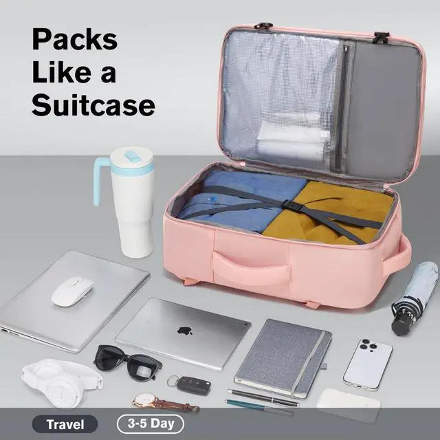 Packs Like a Suitcase, Organizes Like a Travel Bag. 180 clamshell opening for flat packing like a suitcase. Boxy shape gives large usable space for clothes, folders, shoes and daily items. Two main compartments help separate clean and used gear. Works as a travel backpack, personal item, weekender, overnight bag or carry on for men and women. Ideal for trips, commuting and short business travel. ^^ Meets most airline carry-on rules.
