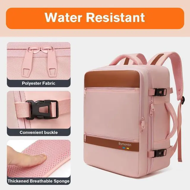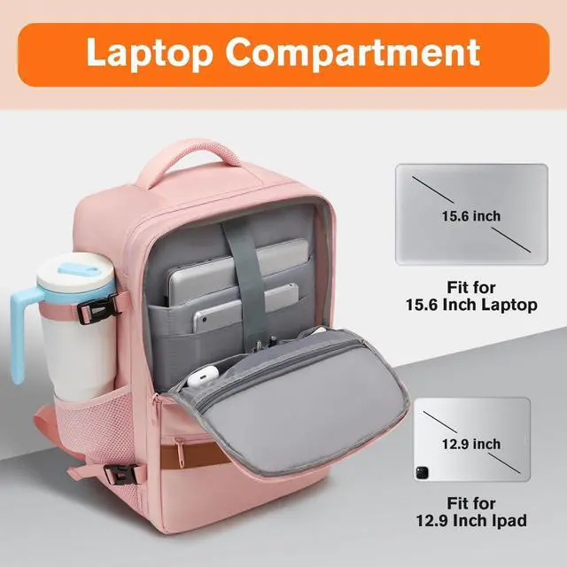 Size XL: 12.5818 in (approx. 35L), fits 15.6" laptop. Slides under seat or in overhead bin. Great for airports, security, fast boarding, frequent flyers, commuters, digital nomads and minimalist travel without rolling luggage. ^^ Comfortable & Flexible Carrying Backpack or Handheld. Thick breathable sponge straps and ventilated back panel reduce pressure. Reinforced side handle for quick grab-and-go in trains, buses and airports. Switch between shoulder carry and hand carry for business or leisure use. Lightweight, easy to wear for long days, campus walking, city travel or airport transfers. ^^ Water Resistant & Durable Fabric. Water-resistant fabric protects from drizzle and splashes. Strong stitching, reinforced seams and smooth zippers offer durability for everyday use. Suitable as office laptop bag, work backpack, travel daypack or personal item. Clean modern look fits both casual and business outfits, ideal for commute and trips. ^^ Practical Storage with Side Bottle Pocket. Two main compartments and organizer pockets keep items neat. Side bottle pocket fits a 1L water bottle or umbrella. Room for clothes, documents, notebooks, toiletries and tech gear without bulk.