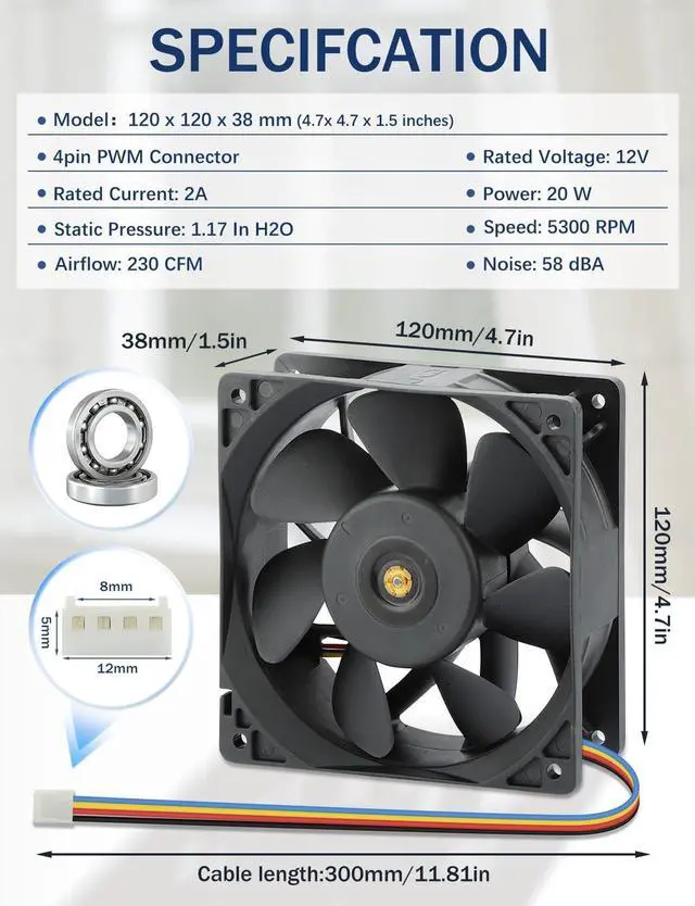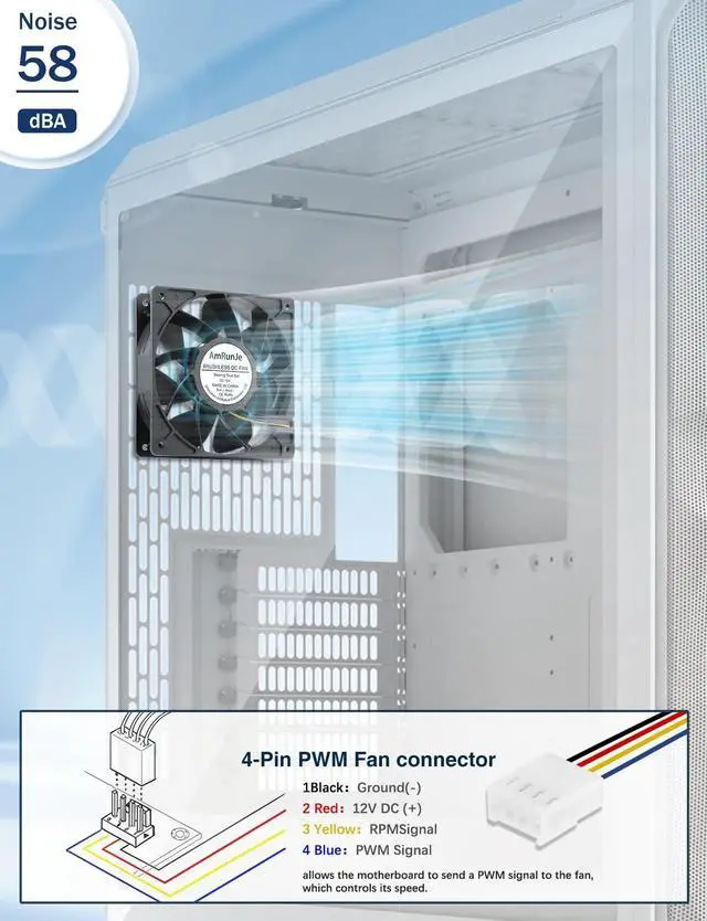 This fan is a versatile 4-pin PWM case fan and PC fans 120mm, perfect for precise speed control. It functions as a 12 Volt Cooling Fan and 12V Replacement Fan, ensuring reliable performance. With a Fan with Grill, it adds safety and protection. As a Computer PC case fan and high-speed fan, it keeps your system cool and running smoothly. It's an 120mm 4pin static high pressure PWM fan and DC Brushless Cooling Fan, providing efficient cooling. It can be used as an intake or exhaust fan, and its special high profile fan design makes it ideal for various cooling needs, including as a computer cooling fan.