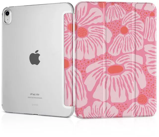 MEEgoodo Case for iPad Air 11-inch M3 (2025) / M2 (2024),Case for iPad Air 5th/4th Generation 10.9 inch 2022 2020, Tablet Cover with Silk Texture & PC Clear Back Cover, Pink Style Floral