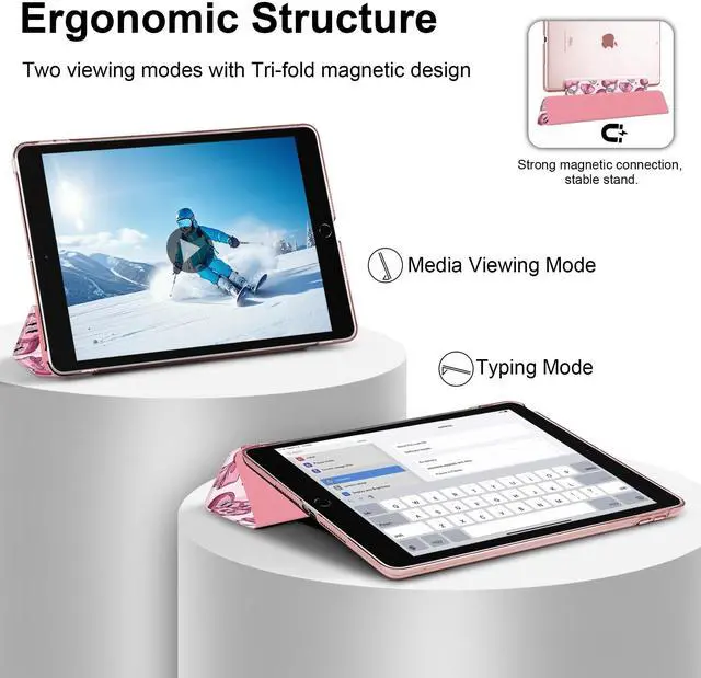 Specifically engineered for 10.2 -inch 2021 iPad 9th Generation (A2602/A2603/A2604/A2605), 2020 8th Generation (A2270/A2428/A2429/A2430), and 2019 7th Generation (A2197/A2200/A2198). Not compatible with other iPad models ^^ Magnetic protective cover automatically wakes iPad 10.2 when open and hibernates when closed to conserve power. Tri-fold stand provides the perfect viewing and typing angle ^^ The translucent frosted back cover lets you see the Apple icon in your favorite color, while the front cover combines a premium PU exterior, microfiber lining, and soft TPU for excellent scratch, impact, and drop protection to ensure long-lasting protection for the 10.2 -inch iPad ^^ Precise cutouts for all ports and buttons make it easy to access all the features of 10.2 iPad without having to remove the case too often.