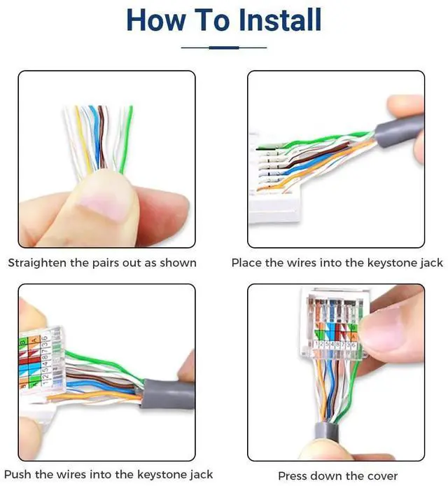 Effortless Installation: Our ZoeRax toolless UTP CAT6 Keystone Jack features a simple setupjust align the wires with the color-coded labels, insert, and secure with the snap-down cover.