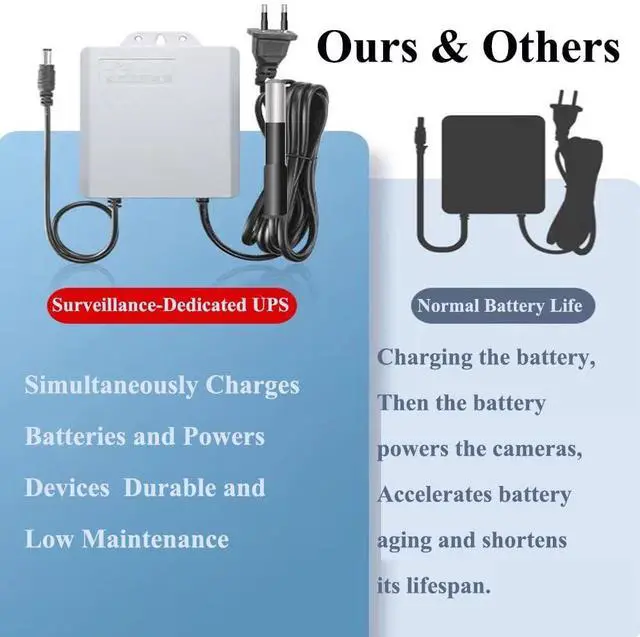 ^^ With 5.7 * 4.7 * 1.7 in dimensions, 118 of AC line length, 11.8 of DC line length, this mini UPS can be used for indoor and outdoor. With 5.5 * 2.1 *10MM DC jack, our 12V UPS is suitable for wifi router, Modem, CCTV Camera and more.