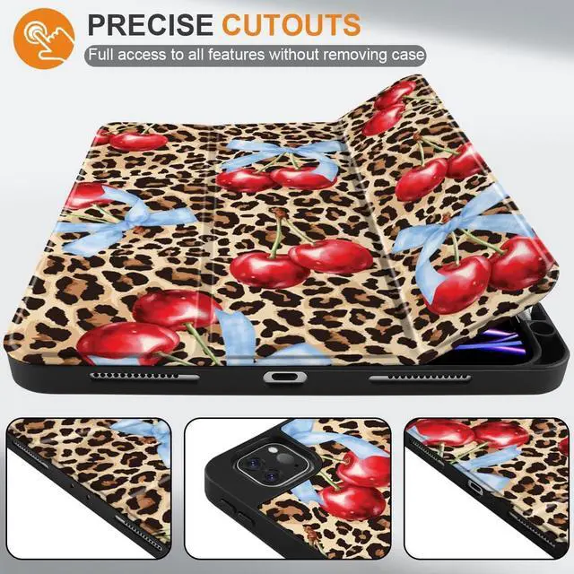 DONGKE Case for 2022/2021/2020/2018 iPad Pro 11 inch Gen 4/3/2/1 - Slim Protective Case - Built in Pencil Holder Support Charging - Trifold Stand & Sleep/Wake Cover- Leopard