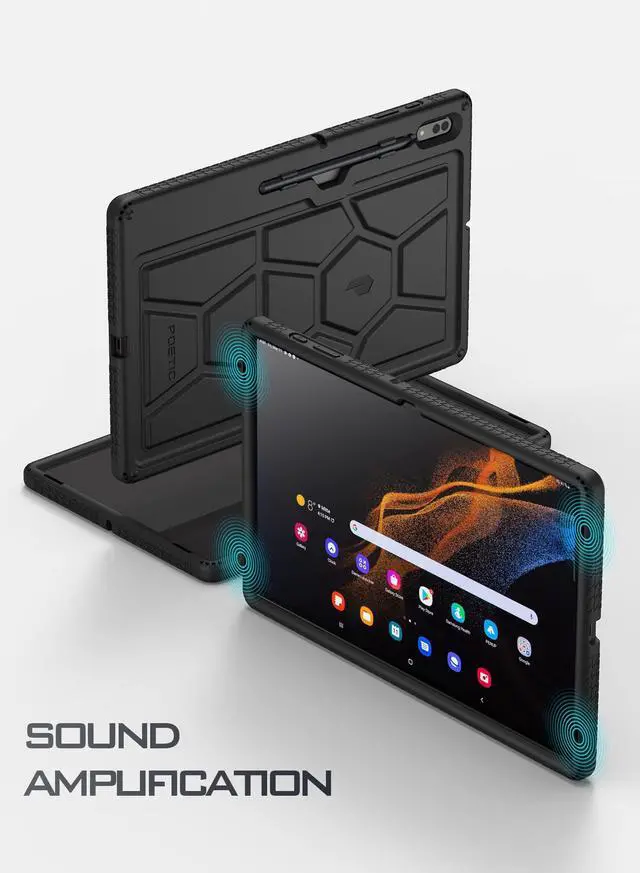 Samsung Galaxy Tab S8 14.6 Ultra Case -Confirm your tablet model number before purchasing: Go to "Settings" on your tablet - About tablet - Model - "SM-X900/ X906 " (Right model number) ^^ Samsung Case for Galaxy S8 14.6 Ultra - Made with kid-friendly, non-toxic silicone. Includes tactile side grip and unique rear turtle shell design with raised supports for better grip and drop protection. ^^ Samsung Galaxy S8 Ultra Case - Ultra thick silicone with protective coating for splash proof protection. Unique corner protection with perforated shock absorbing design to protect from extreme shock and impact. ^^ Samsung Galaxy S8 Ultra Tablet Case - Perforated shock absorbing design to protect from extreme shock and impact. ^^ Tab S8 Ultra case - Raised air vents in the interior help keep the device cool and prevents overheating.