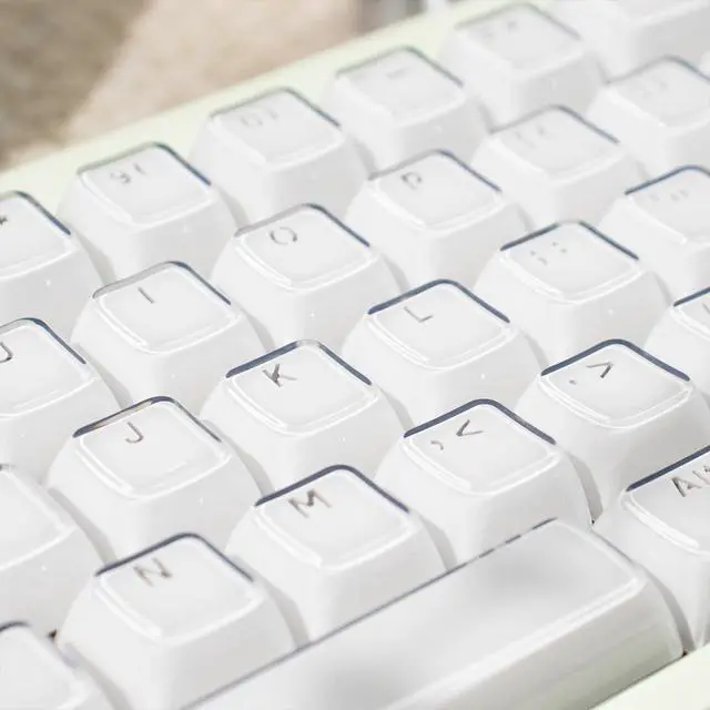 Material Keycaps: Translucent layer unleashes more brilliant backlight effects out, upgrade your basic RGB keyboard illumination to another more dazzling and fancy outlook level. It is important to note that due to the material properties, these clear keycaps may be vulnerable to scratches and tend to retain hand sweat or oil more than PBT material.