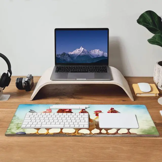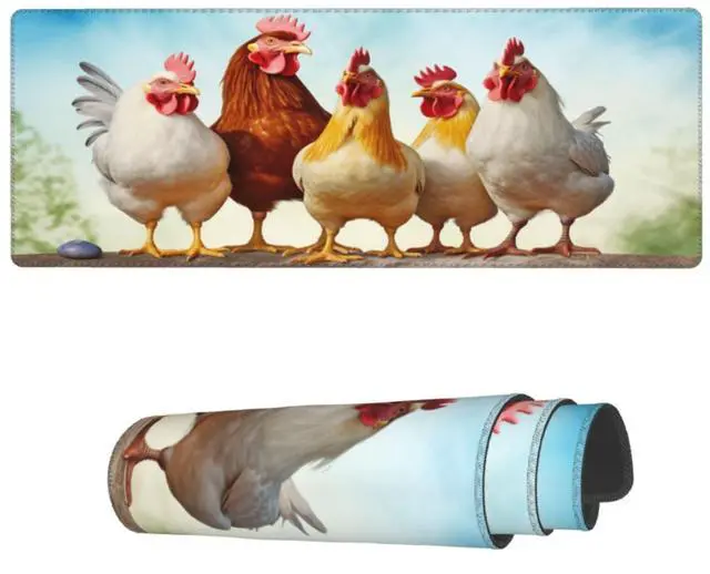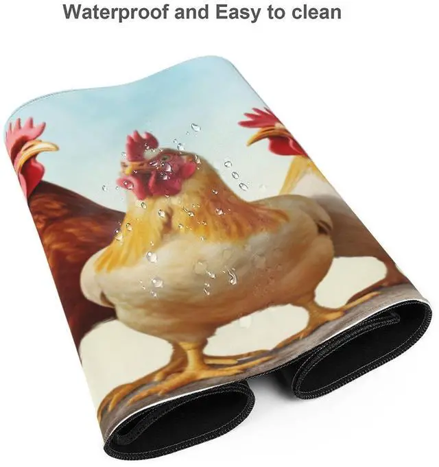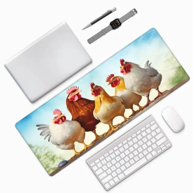 Famame Laptop Mouse Pad Chicken Roosters Farm Animals Desk Mat with Stitched Edges 31.5X 11.8 inch Non-Slip Large Keyboard Rubber Writing Table Mat for Office Home