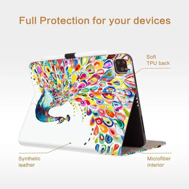Protection & Heat Dissipation]: Premium thickening shockproof TPU back case and durable front cover help protect your iPad from daily bumps scrapes and accidental drops. The bottom features with honeycomb design for heat dissipation