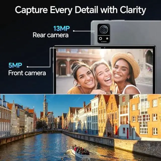 [3-in-1 Tablet PC] comes with a special protective case, Bluetooth keyboard and mouse, easily realizing three modes of use: tablet, laptop and desktop to meet your multi-scenario needs. Built-in Bluetooth 5.0, supports 5G/ 2.4G dual-band WIFI connection. Suitable for coffee shops, offices, bedrooms and more. Let you work happily, talk to your family, and connect with friends anytime, anywhere. ^^ [Excellent Storage Performance] With 12GB of RAM and 256GB of storage, this tablet ensures stability during intensive multitasking. Whether it's downloading the latest apps, storing movies or accumulating tons of photos, it's easy to do so, so you can enjoy an easy and convenient digital life experience anytime, anywhere. ^^ [Upgraded Battery Life] This Android tablet comes with an upgraded 8000mAh battery life to provide you with longer usage time, up to 10 hours of watching videos, up to 8 hours of playing games, and more than 12 hours of listening to music, bringing you more entertainment time and Internet time. ^^ [Ultra-HD Design] This 10.1 -inch tablet has an ultra-HD ips screen with 5MP+13MP dual HD camera, which presents you with richer picture display, clearer portrait capture, and finer detail portrayal, and the large soft screen reduces the visual pressure on your eyes and relieves fatigue.