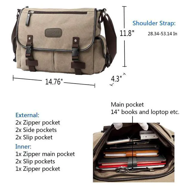 ^^ Multiple pockets: 1 zipper pocket on the flip, 1 zipper zip pocket on the back, 2 side pockets, 2 slip pocket under the flap; Internal access to1 main zipper compartment includs 1 padded laptop compartment fits 15.6 inch laptop with velcro closure, 2 slip pockets and 1 zipper pocket. ^^ Adjustable shoulder strap, Dark texture on the surface, stylish and simple, Suitable for women and men. Soft and thickened shoulder pads to reduce shoulder pressure.