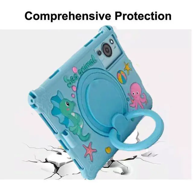 High Quality MaterialThis Tablet Case is made of hard PC and soft, Non-Toxic and Tasteless Silicone materials.Composed of a silicone protective case, a 360 degrees rotate stand and a shoulder strap, and a pen.