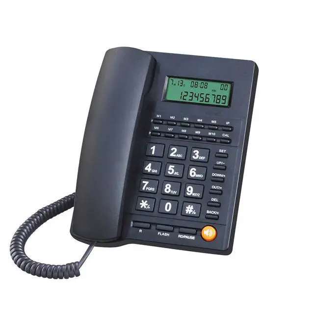 Easy to install: Can be placed on the desktop. 3. Maximum 50 groups of 8 digits or 32 groups 16 digits for incoming call record.. 4. Maximum 14 groups of 8 digits or 8 groups 16 digits for outgoing call record. 5. Real time, date, day, and caller ID display. 6. 5 levels LCD brightness adjustable. 7. 16 ringer tones selectable. 8. Ringer High/low adjustable. 9. Speaker volume adjustable. 10. Flash time 90/95/100/120/180/300/600/1000ms selectable. 11. 3 Groups of alarm could be set. 12. Calculator function. 13. 10 Memories functions. 14. Flash, Pause, Redial and call back function.