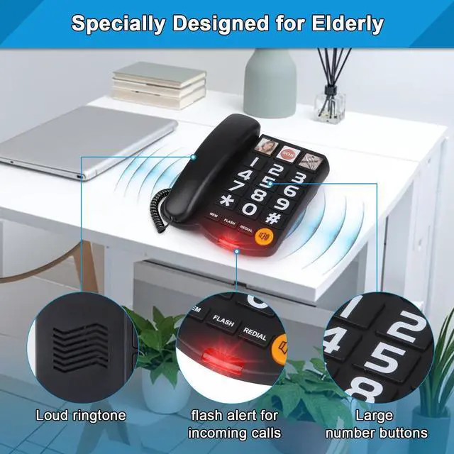 LANDLINE PHONES FOR SENIORS: Our senior phones are specifically designed to meet the needs of elderly individuals. With an extra loud ringer that exceeds 100 dB, big buttons, Hearing Aid Compatible handset, and the added SOS function, these phones are both user-friendly and highly functional. This makes them the perfect choice for seniors who require a basic, standard home telephone with all the necessary features to ensure their safety and peace of mind. ^^
