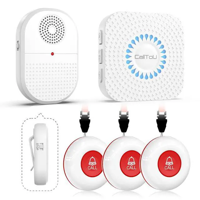 Saves Hovering Over A Loved OneCaregiver pager's receiver is a battery-powered and portable with belt clip and 1 plug-in receiver, and the working range is up500 FT in barrier-free place, you can work out in the yard, do housework or work at home freely. Gives you peace of mind and protect your loved one's independence and privacy ^^ A Huge Help for Hard of Hearing CaregiversThe receiver of the emergency call button system is with vibrate, flash and ringtone function, which is durable for the hearing loss. It has 5 volume level (0-110dB), loud enough and vibrates great that can wake a sleeping caregiver, so can avoid miss a call.
