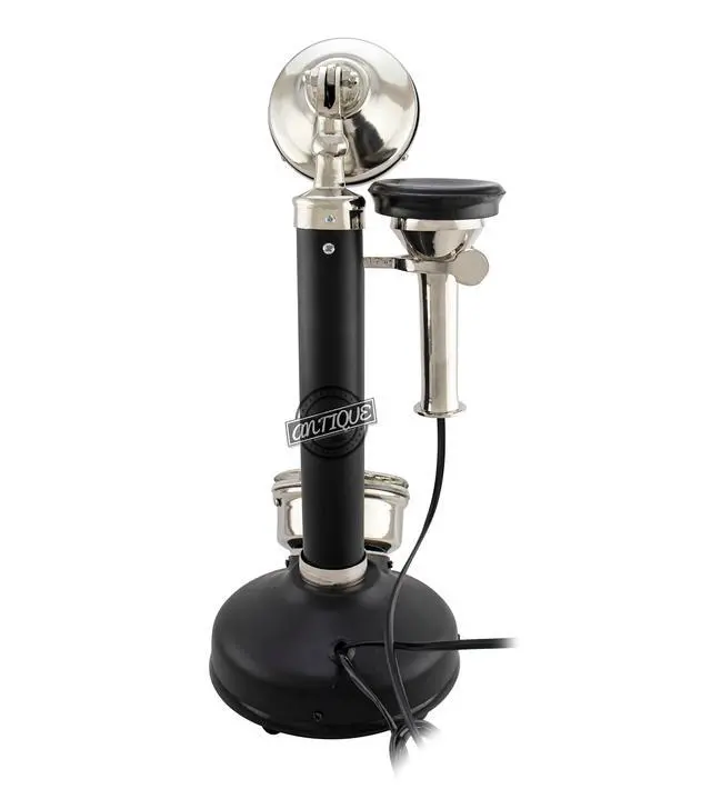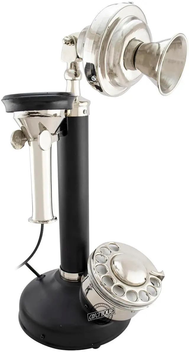 Vintage Candlestick Phone Rotary Dial Telephone Wired Landline Antique Home Decor (Chrome & Black)