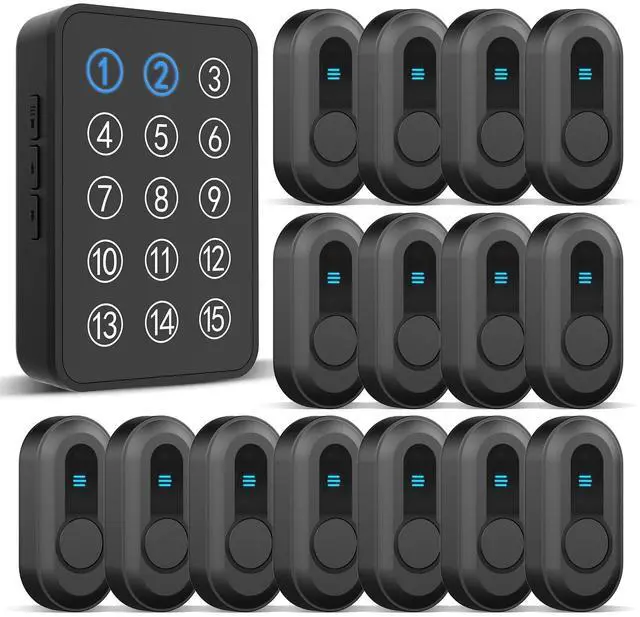 Wireless Caregiver Pager - 500ft Range Nurse Call System with LED Display, 15 Waterproof Call Buttons & 1 Receiver for Elderly, Patients, Disabled at Home, Hospital, Clinic