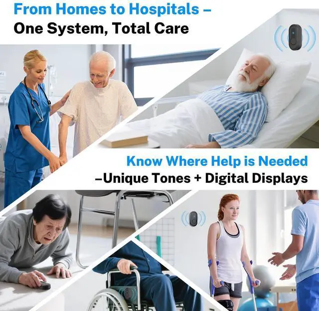 • Wireless & Easy Setup: The caregiver pager system is simple to installjust plug in the receiver and stick the call buttons on walls, wheelchairs, tables or other surfaces. Ideal for homes, hospitals, or clinics, it ensures help is always within reach