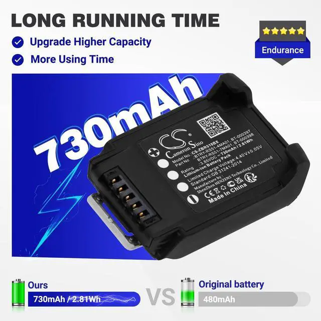 Part No: BT-000397, BT-000398, BTRY-RS51-4MA01, BTRY-RS51-7MA01 ^^ Our company focuses on the research and development of various batteries. Committed to providing customers with high-quality batteries. Certificated with FCC, CE, CB, ISO9332, and RoHS. ^^ If you have any questions during use, please contact us. This product is backed by a 14-day money-back guarantee and a 12-month warranty. ^^ This battery is currently in production, but due to a shortage of raw materials, the number that can be produced is limited. It is expected to be shipped on July