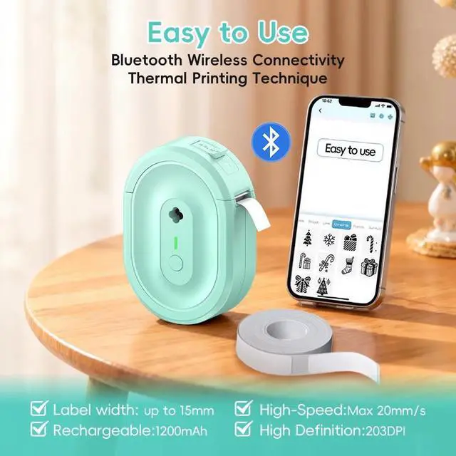 The GeekWavix N12 Bluetooth label maker supports continuous and fixed-length label tapes. This compact machine is half the weight of traditional label makers, equipped with German thermal print head technology, providing superior clarity, hassle-free operation, smooth printing, and fast processing ^^ Wireless & Portable - The mini-size, Bluetooth-connected label printer offers convenient and fast printing from your mobile device. It has a built-in, durable rechargeable battery for extended use. The compact design allows it to easily slide into your pocket for portability ^^ Multiple Creative Functions & Label Templates - Choose from 2000+ symbols, 100+ frames, and a variety of fonts.