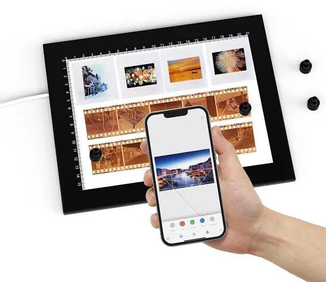^^ Portable & USB-Powered: This compact slide viewer light pad offers a 68 inch working areaperfect for everyday slide viewing and digitalizing tasks. Lightweight and easy to carry, its powered via USB, making it convenient to use anywhere with a laptop, power bank, or adapter.