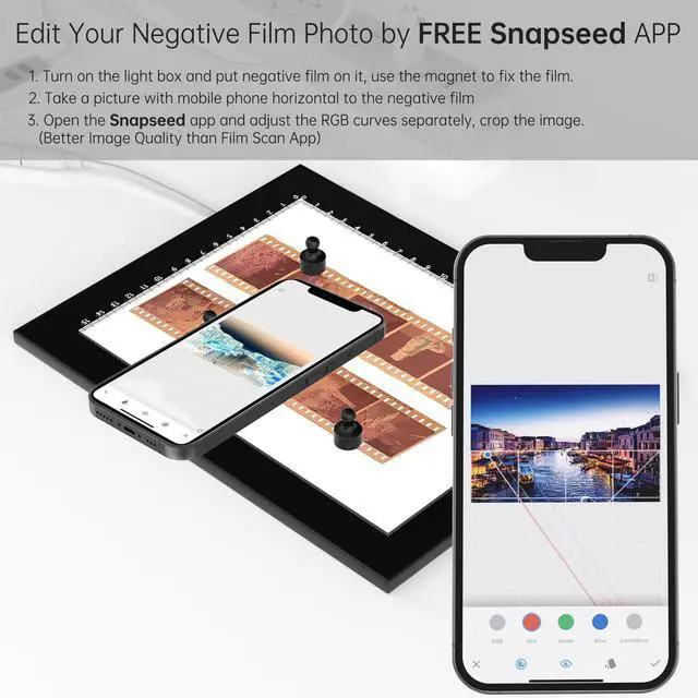 temperature: 5600K200k, simulates natural white light to give negatives and slides a natural tone when viewing or photographing. Color Render Index>95Ra, the high CRI helps restore true color of the original image. A perfect light tool for viewing and digitalizing negatives and slides with your phone and camera ^^