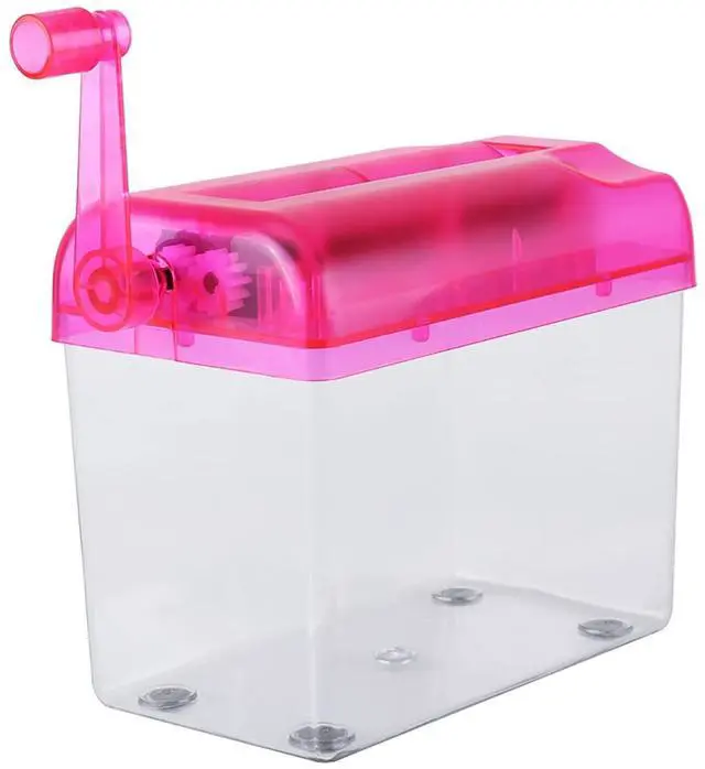 Features: It is suitable for the crushing and secrecy of the counter bill of the financial and securities system. Helps you to cut the paper you don't want into fragments in seconds. Small size, beautiful appearance, and easy to use. No electricity required, you can control the cutting speed. 4 pcs anti slip pads on the bottom ensures that the shredder will stand on the desktop firmly. Transparent body enables you to check whether you should clean it or not. The hand crank can be taken down when not use for easy storage. This hand shredder fits for office, school or family use.