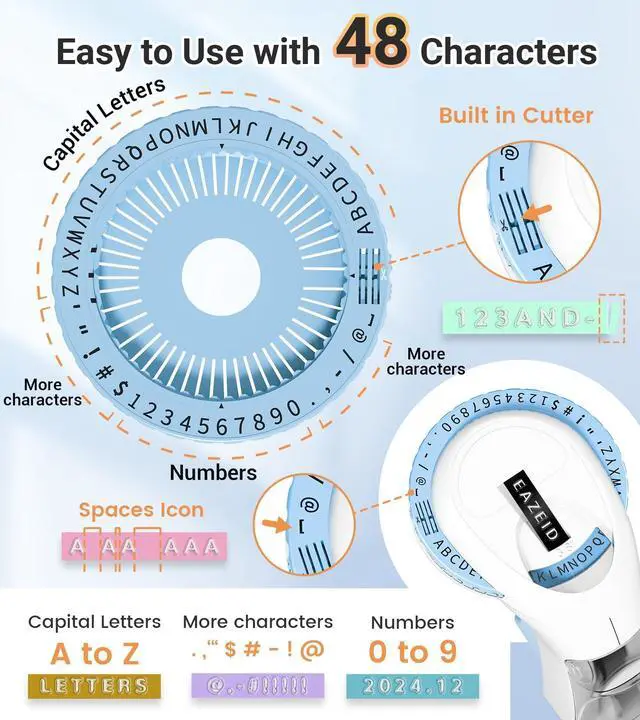 User-Friendly Design: EazeID Embossed 3D label maker with a simple turn-and-press mechanism, this vintage embossing label maker is incredibly easy to use. No need for computers or smartphonesjust rotate to the desired letter and press to print. Perfect for users of all ages ^^ Ergonomic and
