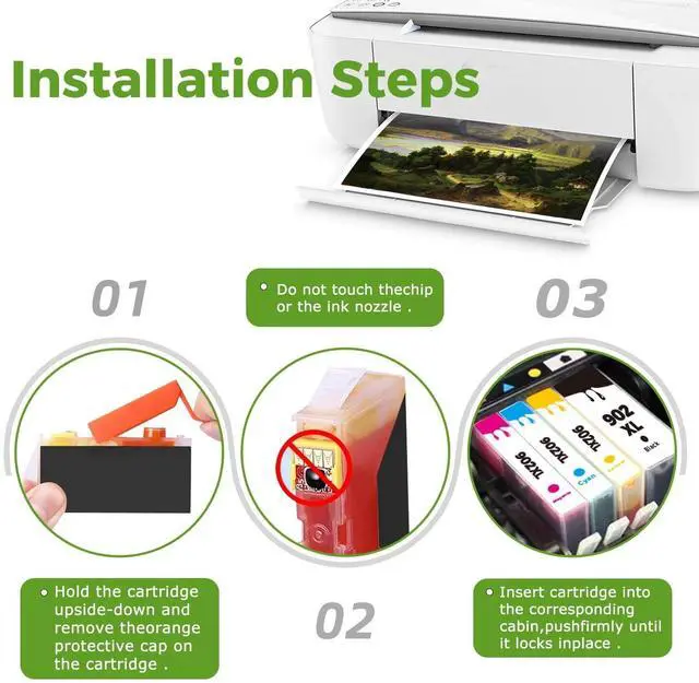 Latest upgraded smart chips: 902xl black and color combo pack engineered with the latest upgraded smart chips, more incompatibilities are blocked, ensure each cartridge 100% recognized by compatible printers quickly and display accurate ink level, you can enjoy no-worry and efficient printing ^^ The 902xl black and color combo pack high yield (approx. )