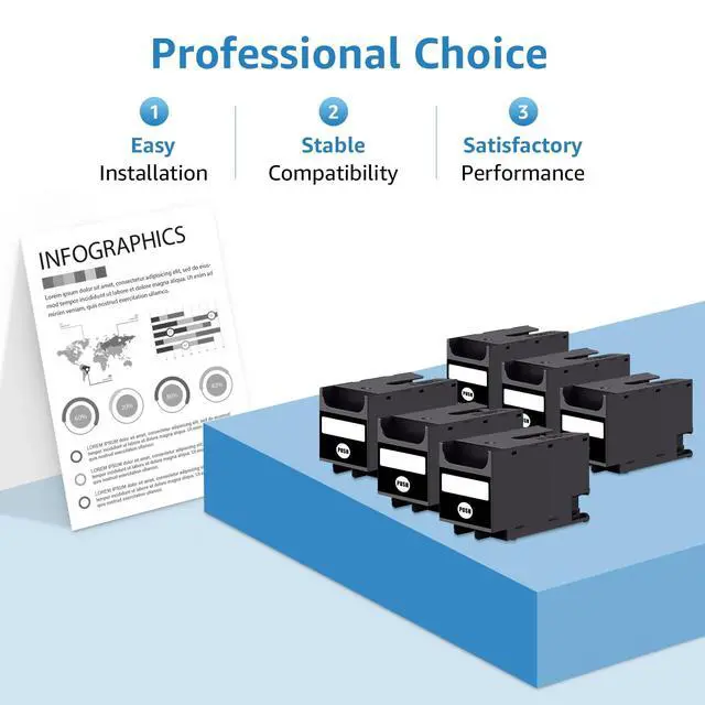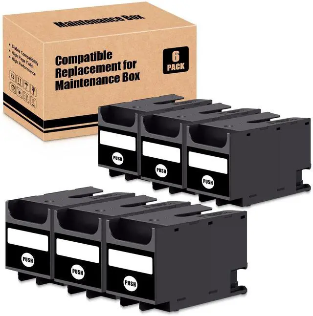 Pack Contains6 Pack Compatible T6715 T6716 Maintenance Box with NEW Smart Chip, 1 pair transparent glove and a screwdriver ^^ T6715 Compatible PrintersCompatible for WorkForce Pro WF 4720DWF WF-4725DWF WF-4730DTWF WF-4740DTWF WF-C5210DW WF-C5290DW WF- C529RDTW WF-C529RDW WF-C5710DWF WF-C5790DWF WF-M5298DW WF-M5299DW WF-M5799DWF WF-C529R Series WF-C529RDTW WF-C579RDTWF WF-C579RD2TWF. ^^ Efficient Absorption of Residual InkEach Yongairuink compatible C13T671500 C13T671600 maintenance cartridge undergoes a rigorous quality testing process to ensure easy installation, high compatibility and highly absorbent cotton fibres that absorb residual ink quickly and effectively, providing reliable maintenance cycles and reducing the frequency of replacement. ^^ Equipped with New ChipThe compatible T6715 T6716 maintenance box is equipped with a new chip that can be easily recognised by printers, preventing clogging of the print head and reducing damage to the print head.