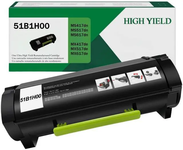 High Yield Remanufactured Toner Cartridge, Undergoes strict production control and product testing to achieve the same print quality as the original toner cartridges. ^^ YeaImage 51B1H00 black toner use of customized superior quality toner, Undergoes strict production control and product testing to meet toner Lexmark 51B1H00 OEM print quality.