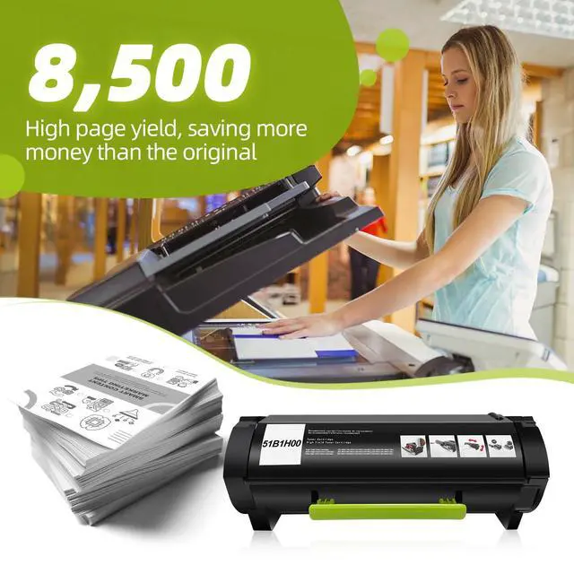 Page Yield Rating: Up to 8, 500 pages per compatible Lexmark 51B1H00 toner cartridge at 5% coverage black on Letter/A4.