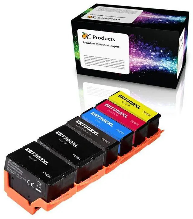 OCProducts remanufactured 6 Pack of Epson 302XL replaces Epson 302, Epson 302XL, Epson 302-I.