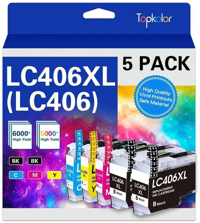 Package Content: 5 Pack LC406XL LC406 Ink Cartridges for Brother Printer for Brother LC406 Ink Cartridges LC406XL LC406 XL LC 406 406XL High Yield, 2 Black LC406 Ink Cartridges, 1Cyan LC406 Ink Cartridges, 1Magenta LC406 Ink Cartridges, 1Yellow LC406 Ink Cartridges ^^
