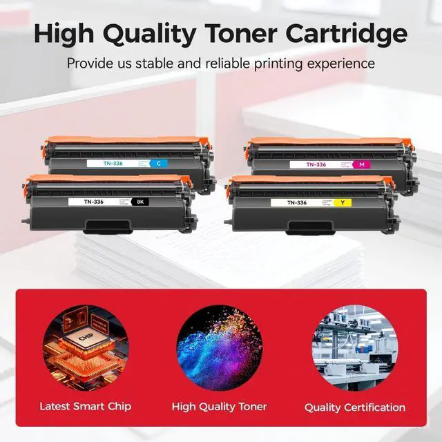 ^^ Package Content: 4-pack toner cartridges combo pack (1 TN336 Black, 1 TN336 Cyan, 1 TN336 Magenta, 1 TN336 Yellow toner Cartridge). ^^ Each our toner cartridge undergoes a strict quality testing procedure to ensure quality and compatibility with your printer.