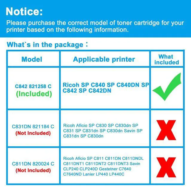 ^^ Compatible Printers: Replacement for Ricoh SP C840 SP C840DN SP C842 SP C842DN ^^