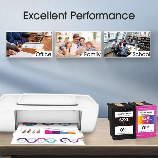 Package includes: 1 Black Remanufactured 62xl Remanufactured ink cartridges + 1 Tri-color Remanufactured 62xl Remanufactured Ink Cartridges. ^^ All H&BO TOPMAE 62XL ink cartridges are professionally tested before leaving the factory to ensure you have a high quality 62XL cartridge. ^^ Producing daily documents, reports, letters, graphics and photos. Meet your printing needs.