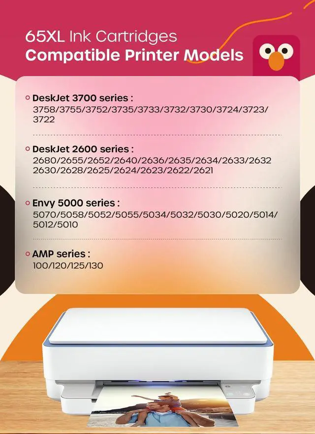 For 65XL ink cartridge for package contents: 1 black 65XL ink cartridge, 1 tri-color 65XL ink cartridge, 1 X eraser, 1 X installation instruction ^^ For 65XL ink cartridge with page yield: 650 pages for 65XL black ink cartridge, 450 pages for 65XL color ink cartridge (5% coverage) ^^ For 65XL ink cartridge for compatible devic: Envy 5055 5010 5012 5014 5020 5030 5032 5034 5052 5058 printer ^^ For 65XL ink cartridge for compatible devic: DeskJet 3720 3721 3722 3723 3724 3730 3732 3733 3735 3752 3755 3758 2620 2621 2622 2623 2624 2625 2628 2630 2632 2633 2634 2652 2724 printer ^^ For 65XL ink cartridge for compatible devic: AMP 100 105 120 125 130 printer ^^