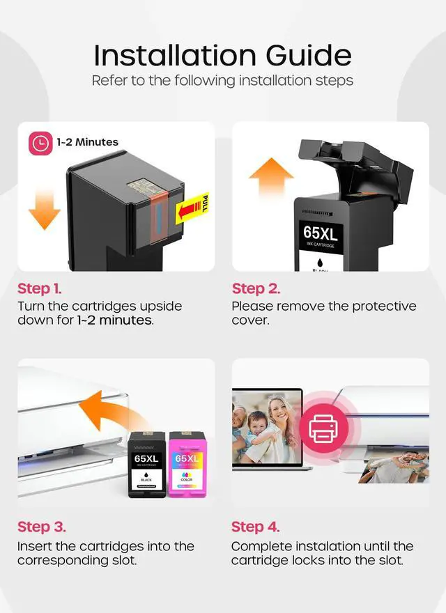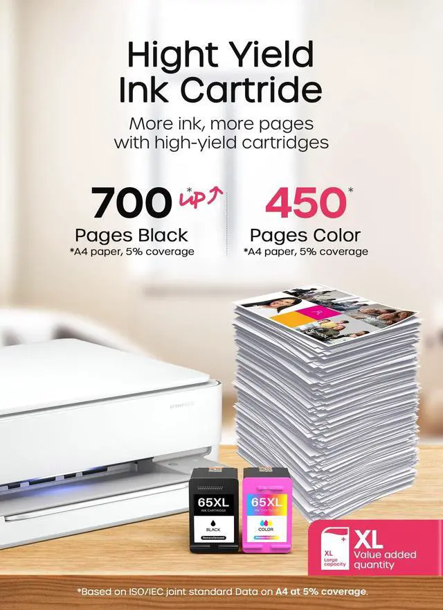 Advantages: With a number of automatic and patented technology to create 65XL ink cartridges combo pack, equipped with the latest upgraded chips to ensure high compatibility