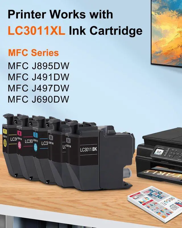 Plug & Play: Engineered to work seamlessly as a replacement for Brother LC3011XL. Features intelligent chips for printer recognition and accurate ink level monitoring. Perfect for MFC-J497DW MFC-J491DW MFC-J895DW MFC-J690DW Printer ^^ Up to 1500 Total Pages -