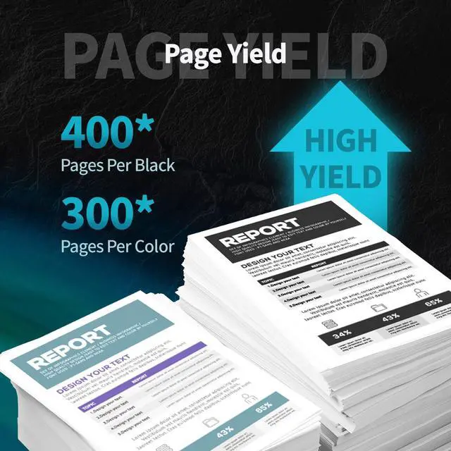 High Yield: 260xl black ink cartridge is 400 pages, 261xl color ink cartridge is 300 pages per ink cartridges at 5% coverage rate ^^