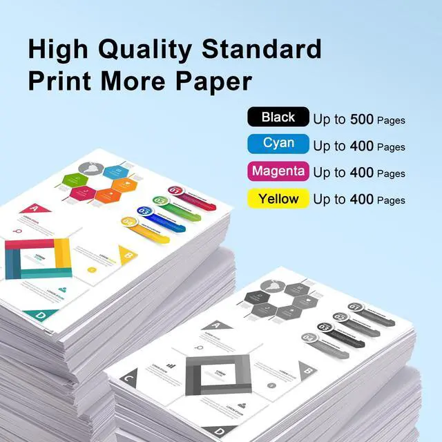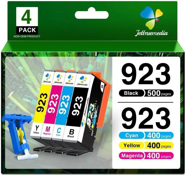 CHIPS) includes: 1* 923 Black Ink Cartridge, 1* 923 Cyan Ink Cartridge, 1* 923 Magenta Ink Cartridge, 1* 923 Yellow Ink Cartridge, 1* Chip Removal Tool, 1* Instruction manua. Each ink cartridge is packed in individual plastic bag and vacuum packed to avoid ink leakage. Because of different product batches, there may be two different versions of the outer packaging, but the quality of the product is the same. ^^ Page YieldUP to 500 pages for 923 black ink cartridge, and 400 pages for 923 color ink cartridge (Letter/A4, at 5% coverage). Exclusive formulated ink ensure the vivid color vibrancy and long-lasting sharp prints. Improve print quality and save printing costs. ^^ High QualityPlease feel free to contact Smartprint-US if there is any damage to the product, or if there are installation problems. Jettruemedia team provides 24 hours online technical support, Jettruemedia for free replacements or refund. Automatic invoice generation. Jettruemedia 923 ink cartridges certified by ISO 9001, ISO 4001, CE, RoHS, REACH, STMC.