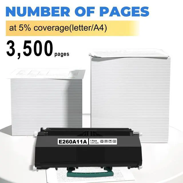 Page Yield: Each E260A11A Toner Cartridge Print up to 3, 500 pages at 5% coverage (Letter/A4), maximizing cartridge efficiency for extended office use.
