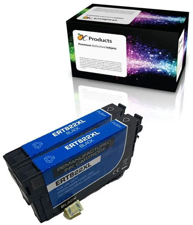 OCProducts remanufactured 2 Pack for Epson 822XL replaces Epson 822, Epson 822XL, Epson 822I.