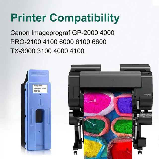 Name: Compatible MC-30 PRO 2000 Maintenance Cartridge Replacement For Canon MC-30 Maintenance Cartridge ^^ [for canon maintenance cartridge mc-30]Compatibility: Work With Canon ImagePROGRAF Pro 2000 2100 4000 4000S 4100 6000S 6100 TX-3000 TX-3100 GP-2000 GP-4000 Printers. ^^ [for canon mc-30 maintenance cartridge]Advantages: Easy Installation, Extended Printer Lifespan, MC-30 PRO 2100 Maintenance Cartridge Can Help You Maintain Good Printing Quality, And Extend The Printer'S Lifespan. ^^ [for canon mc30]MC-30 Has Been Designed And Tested To Meet The Highest Quality And Performance Standards, Saving You Expensive Repair Or Replacement Costs. ^^ [for canon mc30 maintenance cartridge]High
