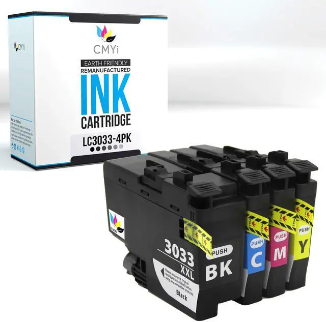 Package Contents: 1x CMYi LC3033 Black, 1x LC3033 Cyan, 1x LC3033 Magenta, 1x LC3033 Yellow ink cartridge (This is not an OEM product)