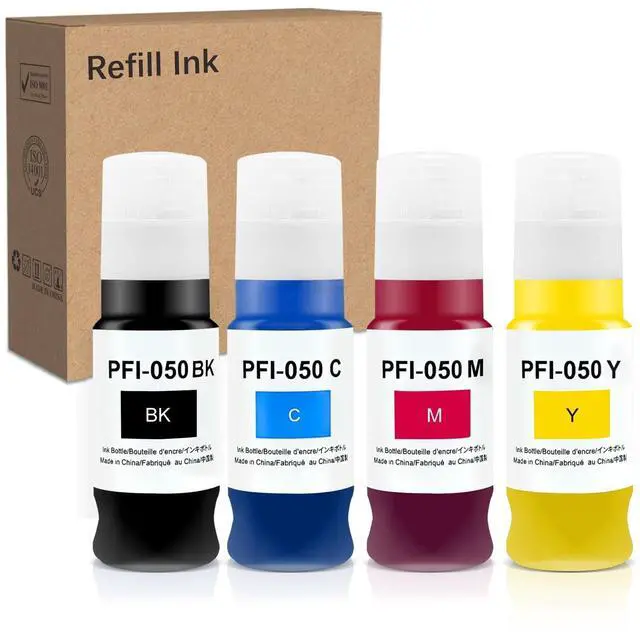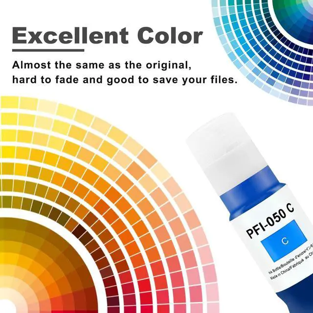 Product content: 4X70 ml PFI-050 Pigment ink ( 1xBlack 1xCyan 1xMagenta 1xYellow ) Compatible with Canon PFI-050 PFI 050 PFI050 imagePROGRAF TC-20 TC-20M Printer. If you have any questions during use, you can contact us by email and we will reply you as soon as possible.