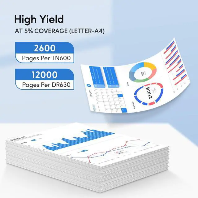 High Page Yield: 2, 600 Pages Per TN660 Toner Cartridge and 12, 000 Pages Per DR630 Drum Unit (at 5% coverage). ^^ Easy to install. All Wearec TN660 Toner Cartridge&DR630 Drum Unit are tested to ensure fully compatibility with your printer along with quality printout.
