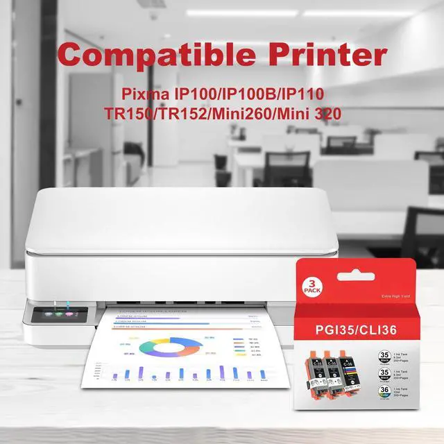 Latest Chips: Greenland Office pgi35 cli36 ink with upgraded smart chips ensure each ink cartridge will be 100% recognized by tr150 tr160 tr152 ip100 ip110 mini260 mini320 printers.