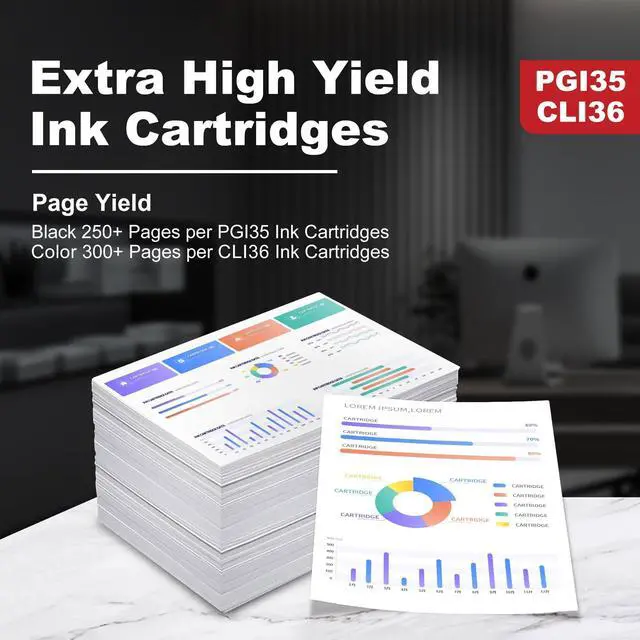 High Page Yield & Value: Up to 250 pages for per canon pgi-35 black ink cartridge and up to 300 pages for canon cli36 ink cartridges. (Based on 5% on A4 paper) ^^